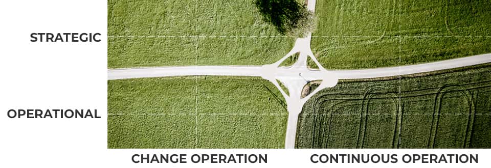 Het veranderbedrijf behelst veel grotere verandervraagstukken, waarbij je als CTO goed moet nadenken hoe je de vernieuwing in de bestaande organisatie gaat implementeren. Een ander ERP-systeem, bijvoorbeeld. Dit gaat om vraagstukken die je eerst projectmatig moet oplossen, om je vervolgens te buigen over de vraag hoe je de verandering een blijvend onderdeel maakt van het continubedrijf.